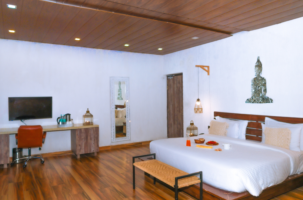 Sitabani Studio is well decorated and the perfect stay for a couple with a luxury touch on a budget. It is a king-size bed with a balcony and you can see the Jungle view.
